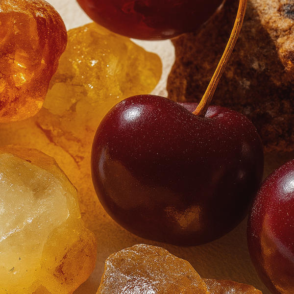 Połączenie czereśni i bursztynu tworzy słodki, głęboki zapach, w którym owocowa świeżość spotyka się z ciepłem żywicznej nuty. To wyjątkowa kompozycja, która pozostaje na skórze, niosąc wrażenie elegancji i subtelnej zmysłowości.