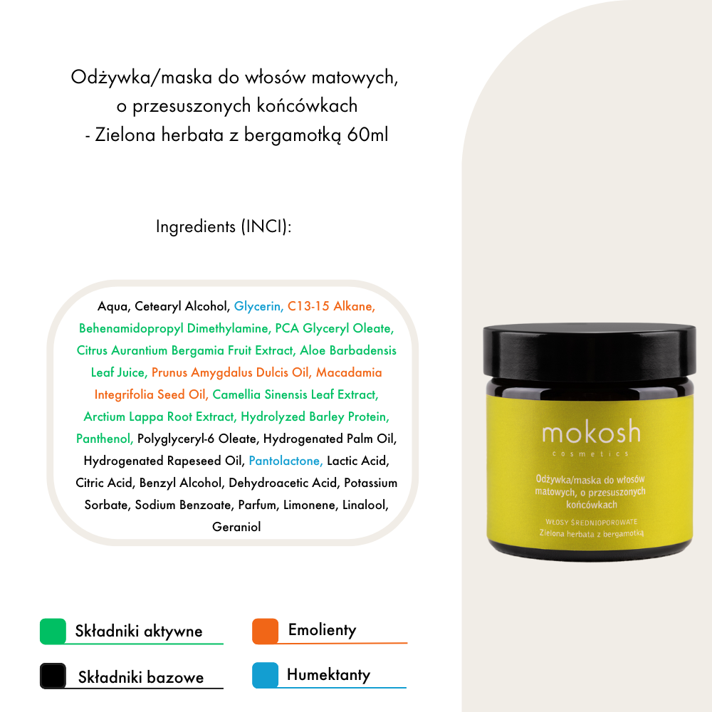 Odżywka/maska do włosów matowych, o przesuszonych końcówkach - Zielona herbata z bergamotką 60ml